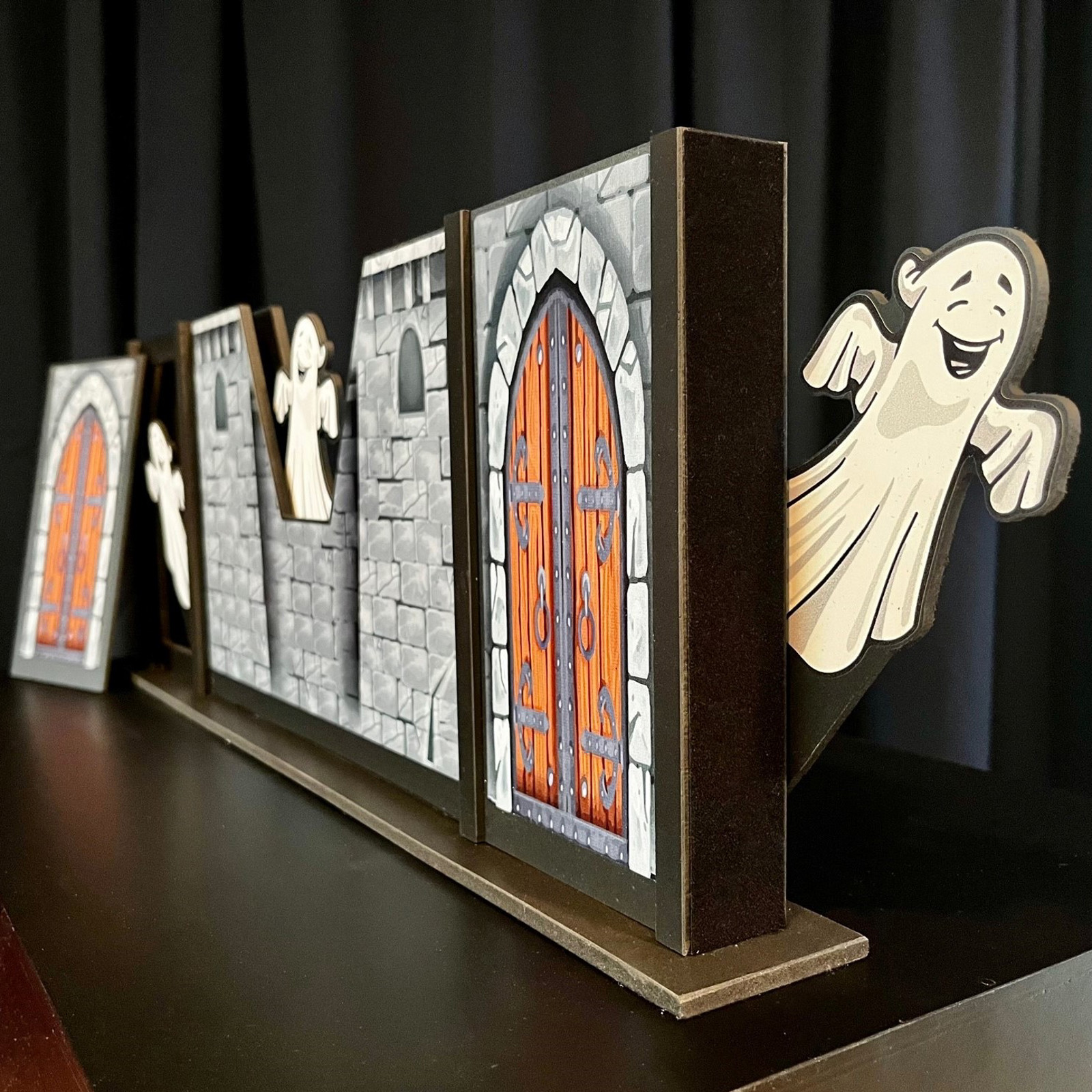 Du præsenterer dit publikum for det lille glade spøgelse og slottet hvor det huserer. Men selv om børnene forsøger at hjælpe dig, kan det være ret så svært at holde styr på spøgelset. For øjeblikket efter at du har sat det ind bag døren, farer det hen over slotsmuren og titter ud i den anden side. Og så snart du kigger efter det hvor børnene peger, flyver det tilbage og titter op over den første dør...
