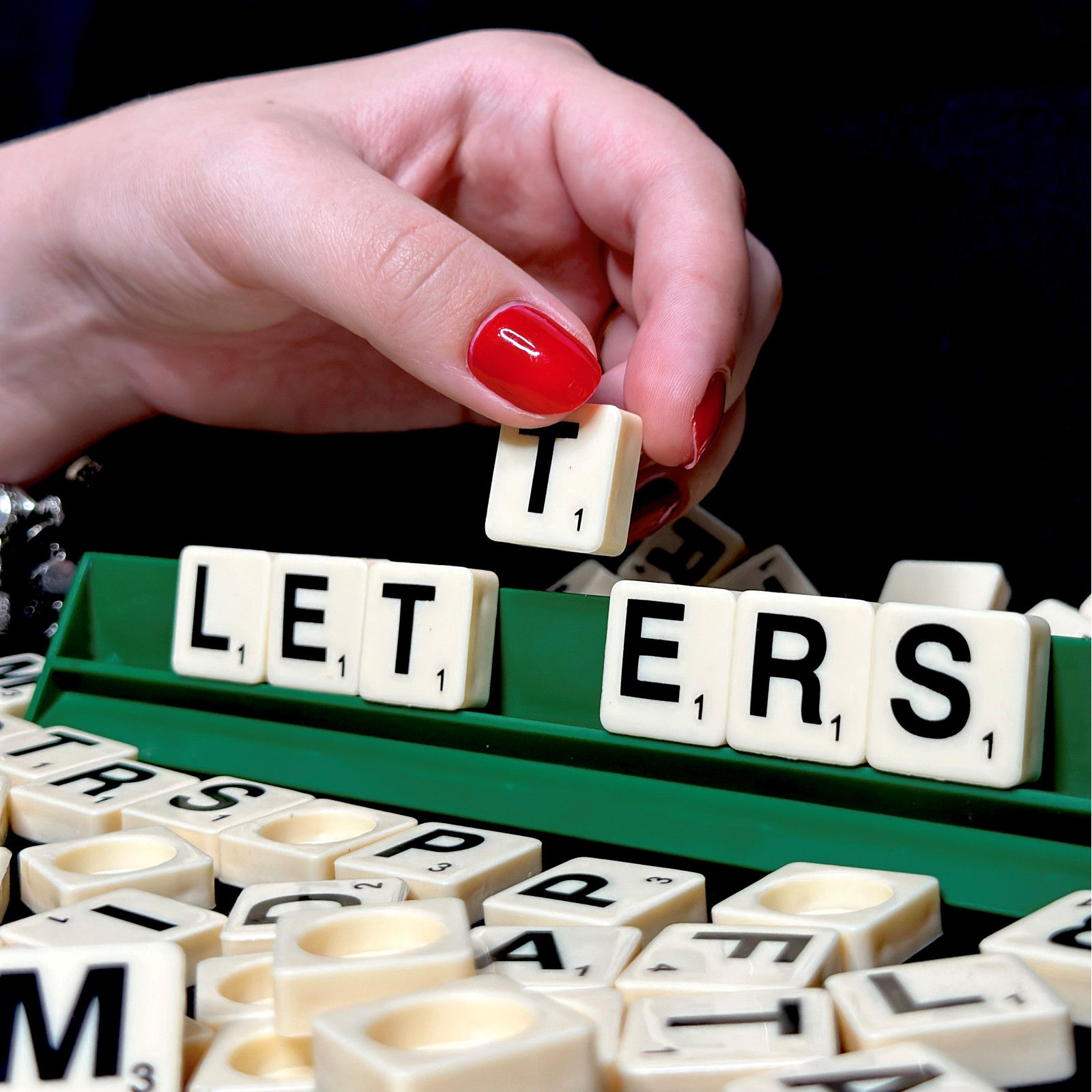 - Der anvendes ægte Scrabble® bogstaver.