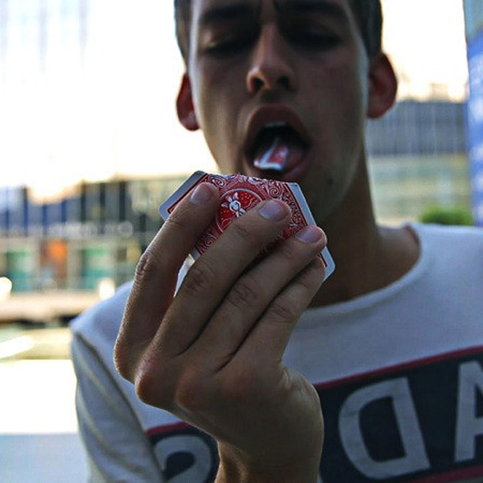 En tilskuer vælger et kort og signerer det på BEGGE sider. Herefter bliver kortet i TILSKUERENS HÆNDER under HELE den næste sekvens: Du river helt tydeligt et hjørne af det valgte kort. Tilskueren kan både HØRE og SE det ske – ja, personen kan endda SELV få lov til at gøre det. Herefter sætter du hjørnet tilbage, så kortet bliver HELT IGEN! Tilskueren kan undersøge kortet på det grundigste, og tage det med hjem og vise vennerne.