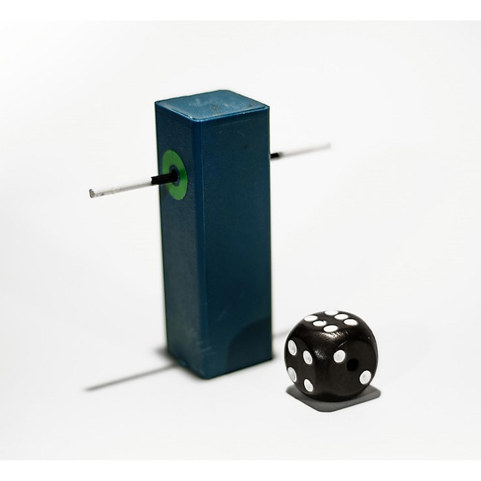 Tryllekunstneren viser en terning med et hul igennem, et aflangt tårn og en lille tryllestav. Han viser hvordan han med tryllestaven kan låse terningen fast i toppen af tårnet, og kun ved at trække staven ud, kan terningen blive frigjort. Dog - som tryllekunstner - er det nok at sige et par trylleord, og med et knips går terningen fri af den solide tryllestav og lander lige i tilskuernes måbende hænder.