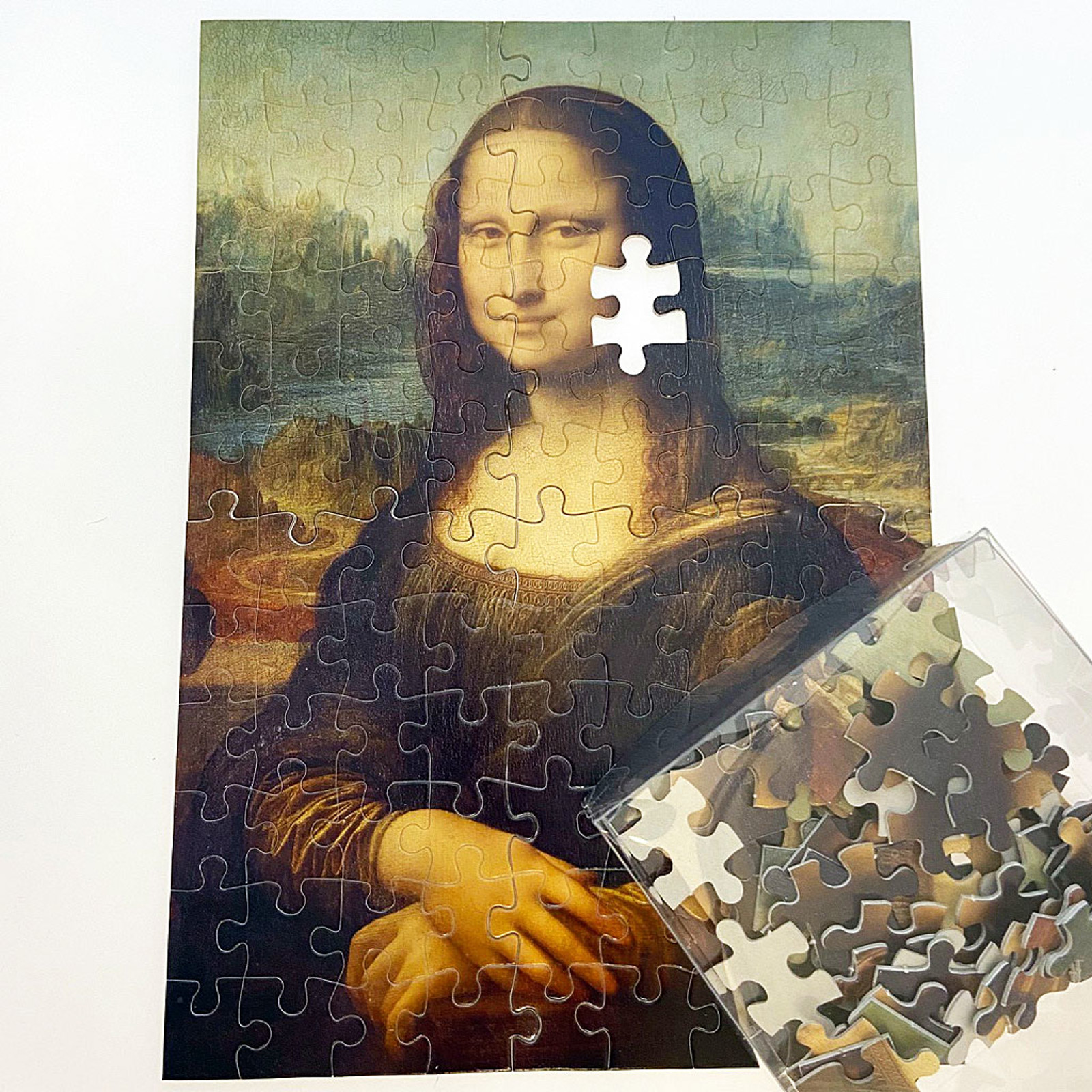 En tilskuer blander en bunke puslespilbrikker og plukker en tilfældig af dem. Tryllekunstneren henleder opmærksomheden på et klæde (eller måske en avisside) der dækker et tilsvarende færdigt puslespil på bordet. Klædet fjernes og Mona Lisas underfundige smil åbenbares... Men hov, der mangler faktisk præcis at blive lagt en enkelt brik. Tilskueren får selv lov til at prøve med brikken han har i hånden - det viser sig at være præcis den der mangler for at fuldføre puslespillet!