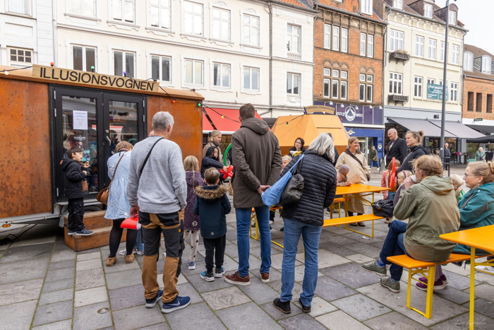 Midt på Søndergade finder du vores festivalplads med de små intime mini-teatre med close-up trylleri, kaffevogn, tryllebutik og infovogn. I 2026 bliver pladsen overdækket og får også egen scene med shows. IllusionsPladsen er det perfekte sted at mødes med alle de andre tryllekunstnere.