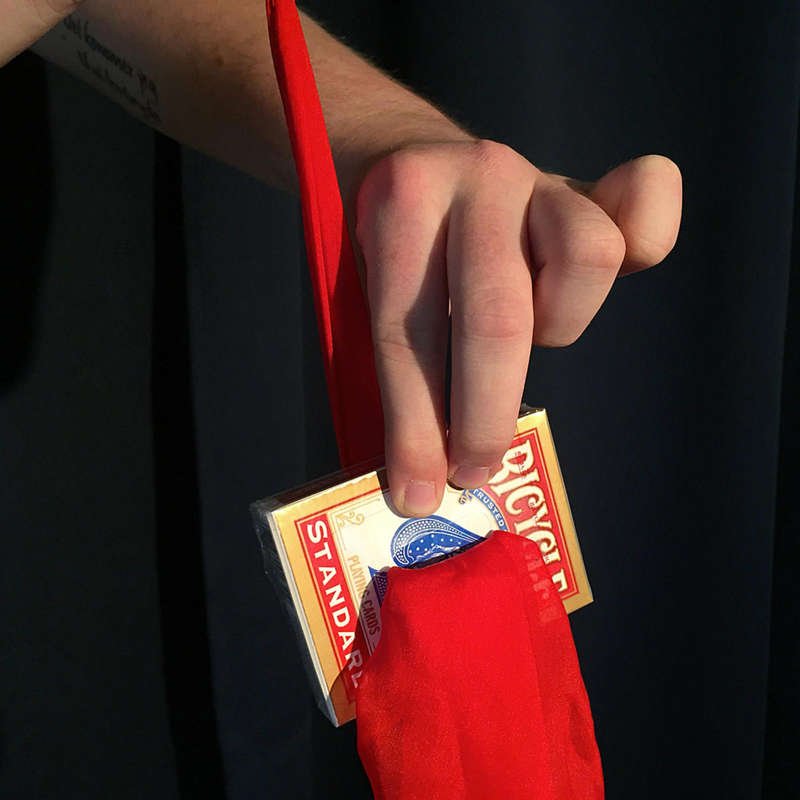 Der findes flere varianter og kopier på markedet, men som altid støtter vi originalerne – i det her tilfælde er opfinderen den profesionelle koreanske tryllekunstner Jeimin Lee. Hans hjælpemiddel er også det bedste: det er effektivt, usynligt og let at håndtere. Du modtager det sammen med et rødt silketørklæde, så du kan gå i gang, så snart du har set videoinstruktionen.