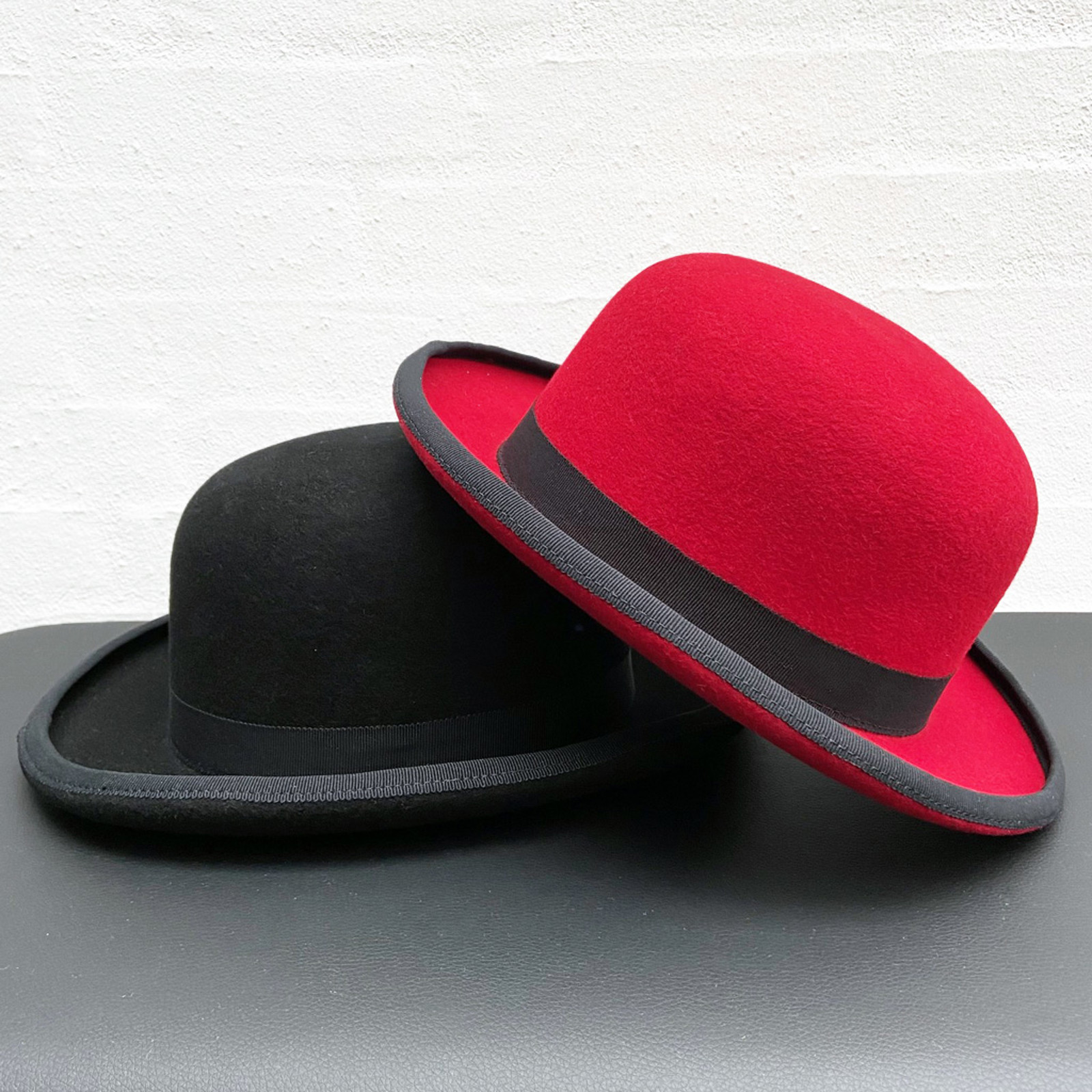 I samarbejde med en dansk hattemager, kan vi nu tilbyde vore kunder nogle rigtig flotte bowlere i kraftig filt. Hattene er med svedrem, silkefoer og sort kantbånd.