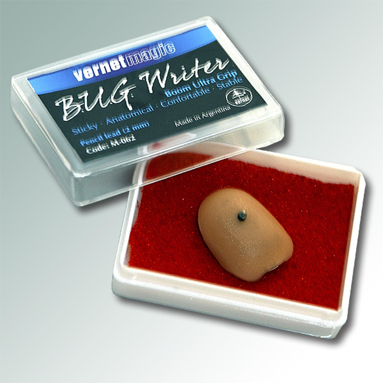 Med dette lille værktøj har du mulighed for hemmeligt at skrive på et stykke papir imens du holder det. Denne nydesignede B.U.G. udgave udmærker sig ved, at være usynlig for publikum og sidde stabilt fast på fingeren, hvilket gør den er let at skrive med.