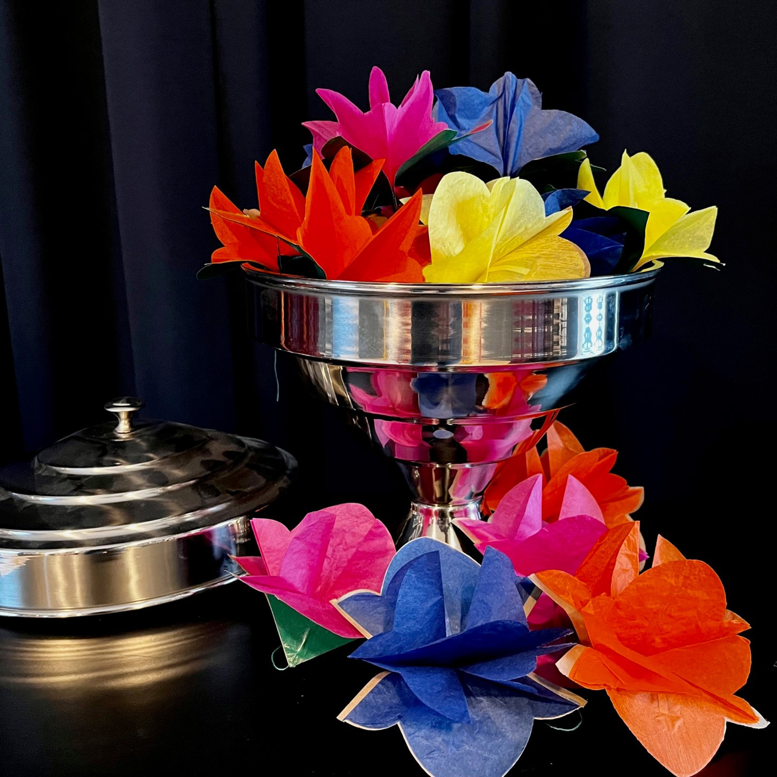 Det har gennem mange år været meget populært at anvende klapblomster til scenetrylleri, og ikke uden grund. De specielle papirblomster fylder sammenklappet meget lidt, men danner i udslået tilstand en stor, flot og farverig produktion.