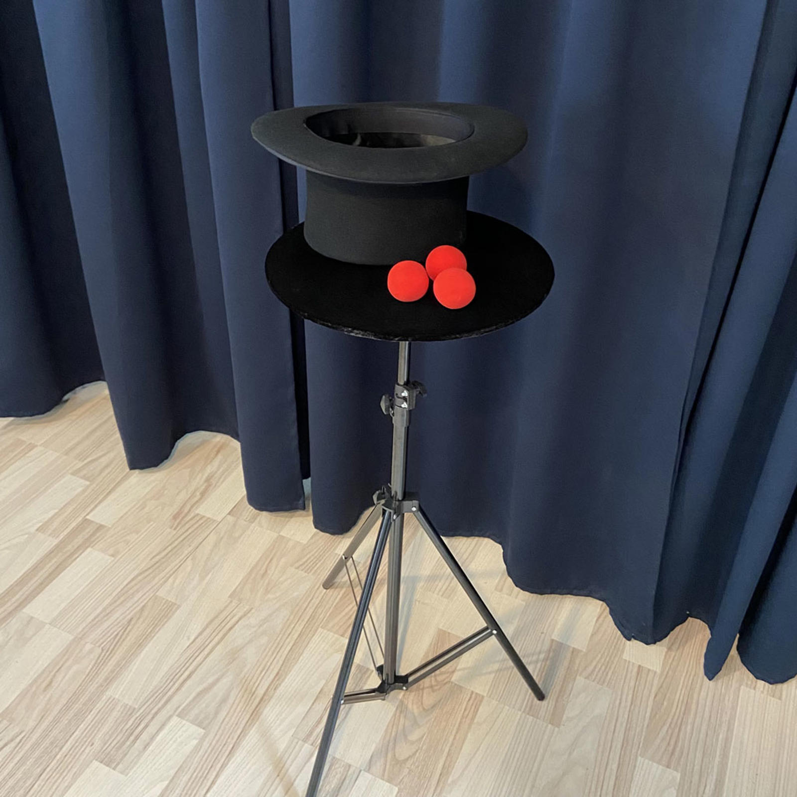 Mangler du et praktisk tryllebord, som du kan have med dig overalt? Vi har fået produceret en serie prisfornuftige trylleborde, der står stabilt på tre ben, kan indstilles i højden og med sort velourbeklædt bordplade - i tre forskellige størrelser. Alt kan foldes sammen og ligge i din kuffert.