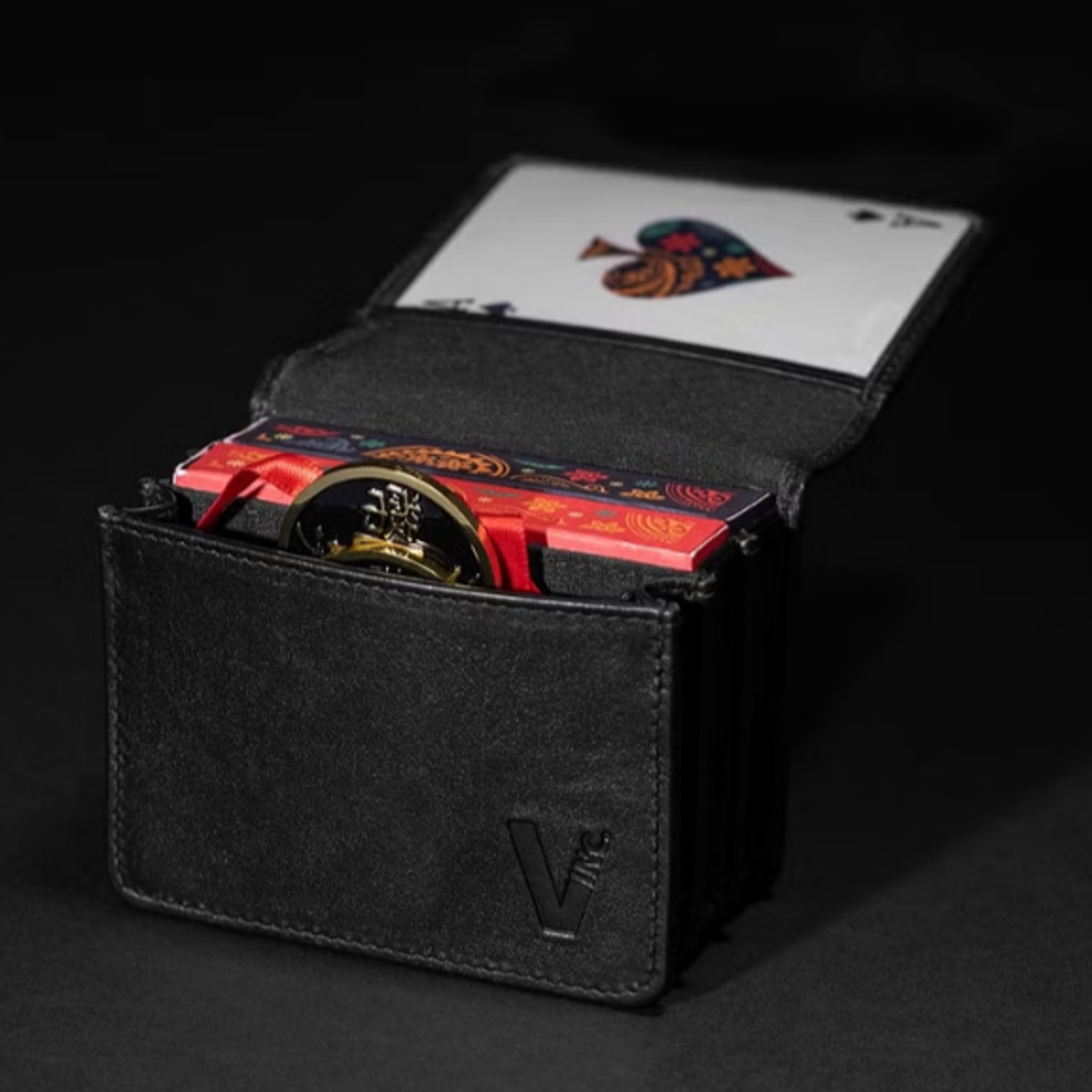 Pro Carrier Deluxe har ikke alene plads til to kortspil, der er også et gennemsigtigt vindue udenpå, med plads til dine visitkort. Inde i mini-tasken er endnu en gennemsigtig lomme, der f.eks. kan indeholde dit favorit packettrick eller specialkort. Der er yderligere to lommer med plads til ekstra kort eller forudsigelser, og en lomme med lynlås, der kan indeholde dine mønttricks.