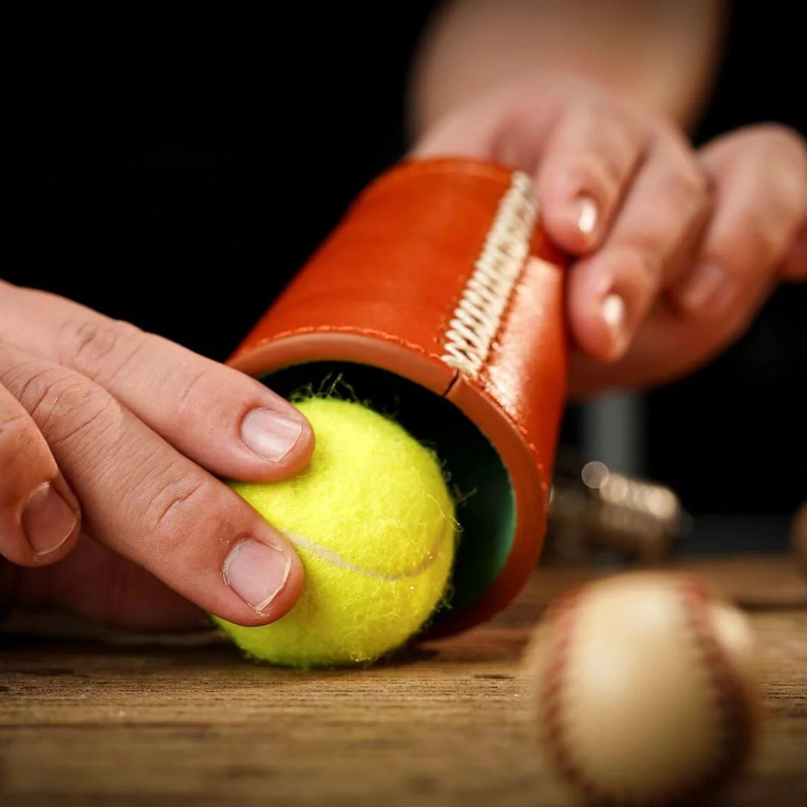 Denne udgave er udført som et eksklusivt læder-raflebæger, der både ser elegant ud og føles fantastisk i hånden. Kuglerne er udformet som runde baseballs i læder.