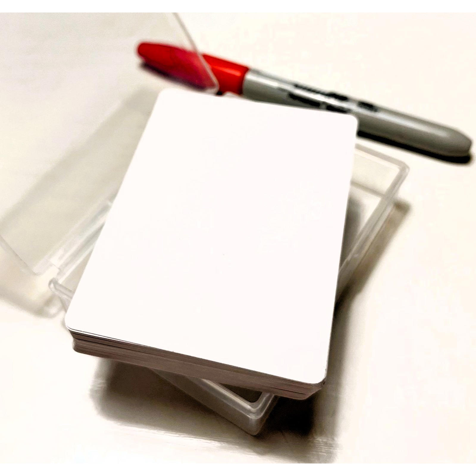 Det er værd at bemærke, at der ikke er tale om rigtige spillekort. De her kort fremstår matte og mere som uskyldige blanke stykker karton, der leder indtrykket væk fra korttrylleri. De kommer i en transparent plastikæske.