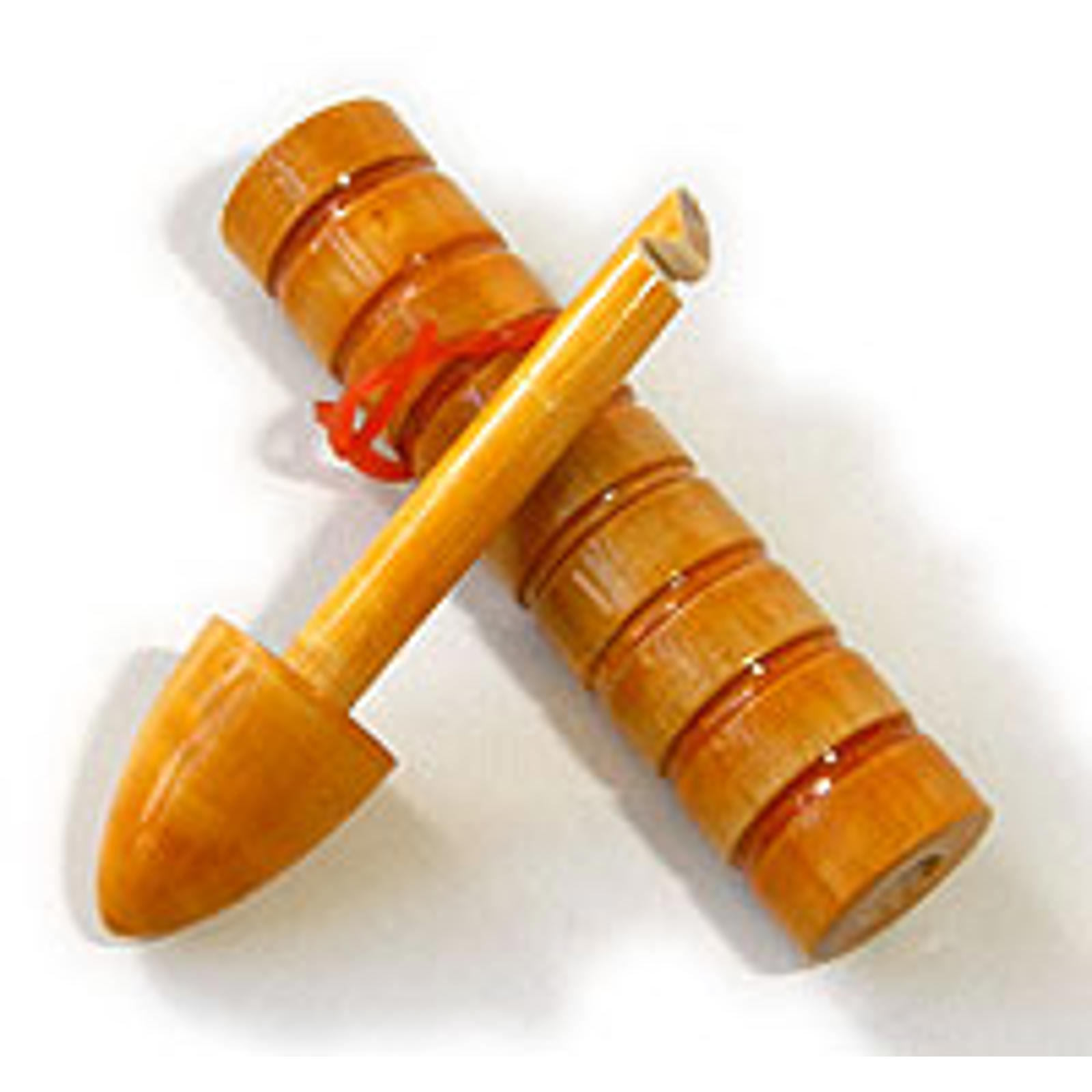 Et trærør med en elastik i bunden og en pind med en krog i enden. Opgaven går ud på at fange elastikken nede i røret, så pinden kommer til at hænge fast. Du kan altid klare det, men lige meget hvor flittigt dine venner forsøger, vil det aldrig lykkes for dem.