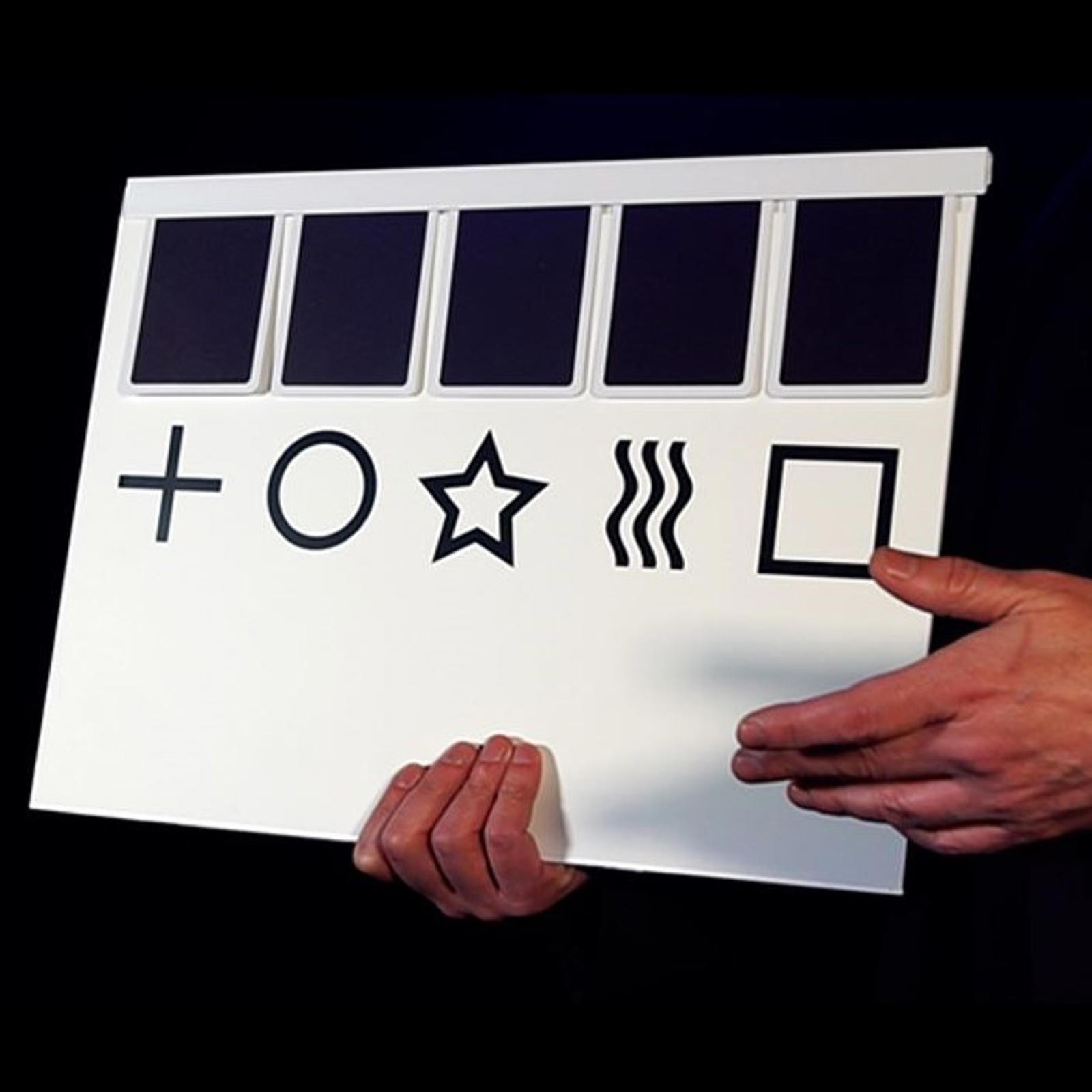 Du viser og blander 5 store ESP-kort med forskellige symboler. Mens de har bagsiden ud af, fornemmer og vælger tilskueren selv præcis hvor de et af gangen skal sættes på pladen. Ikke desto mindre får han dem ALTID placeret, så de nøjagtig matcher de 5 symboler på pladen!