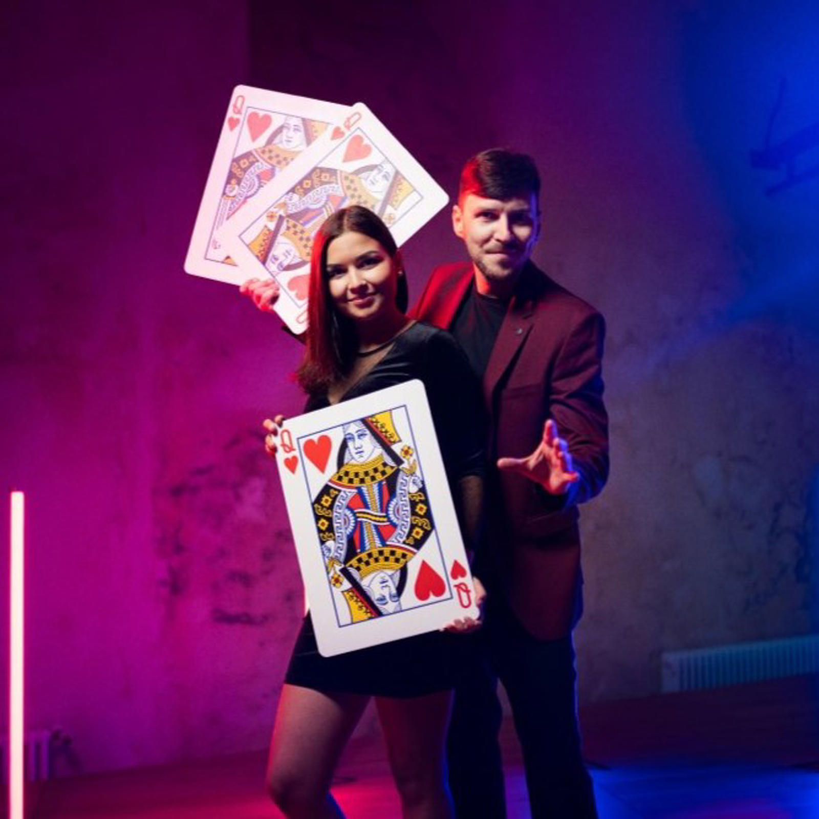 Effekten kort: tryllekunstneren viser tre kort - ruder es, hjerter dame og klør konge. Herefter følger et klassisk spil med tilskuere, hvor de skal prøve at følge hvor kortene er. Til slut forvandles alle kortene til hjerter dame!