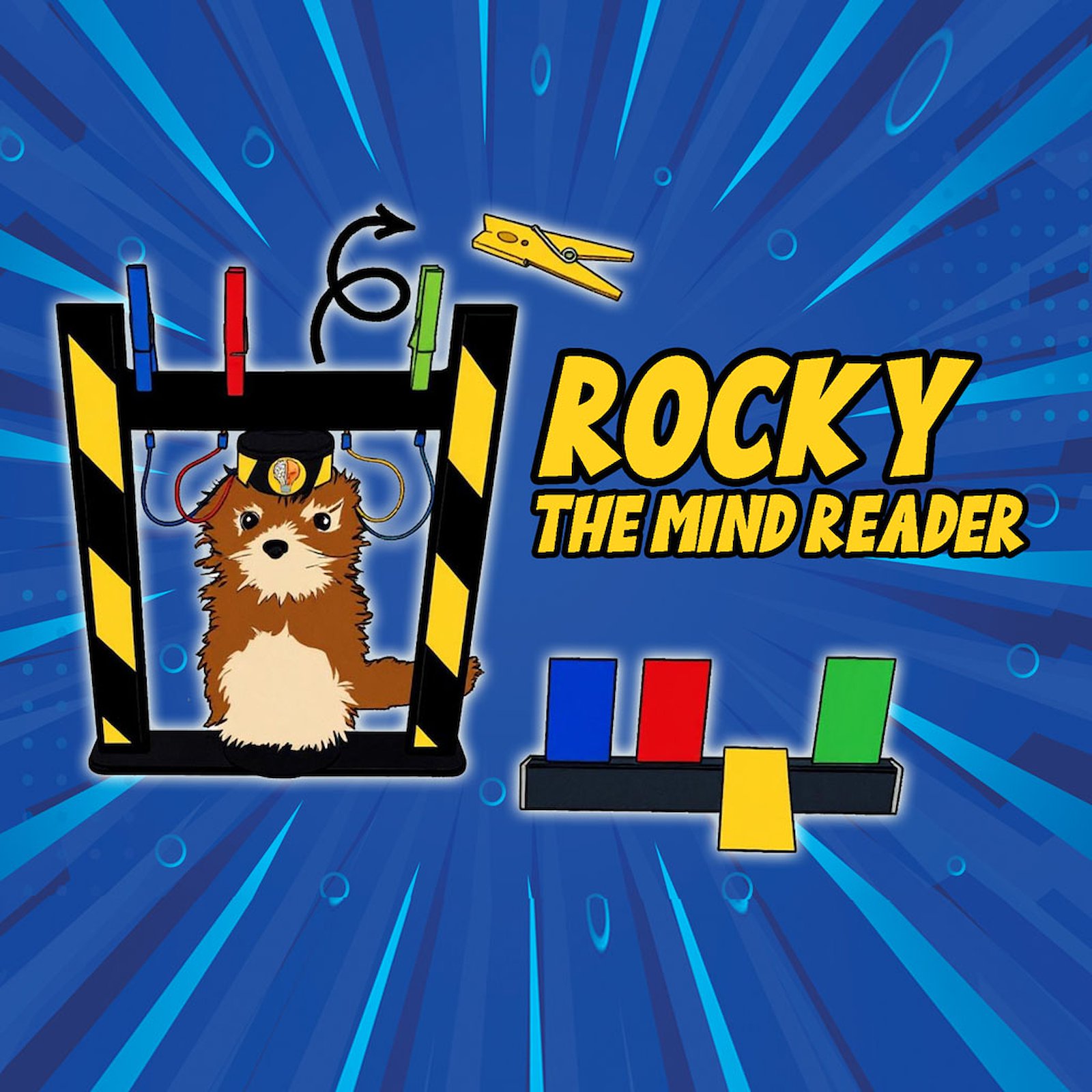 Herefter placeres Rocky i sin “hjernebooster”. Efter et øjebliks spænding… skyder en tøjklemme automatisk op — præcis i den farve, tilskueren har valgt!