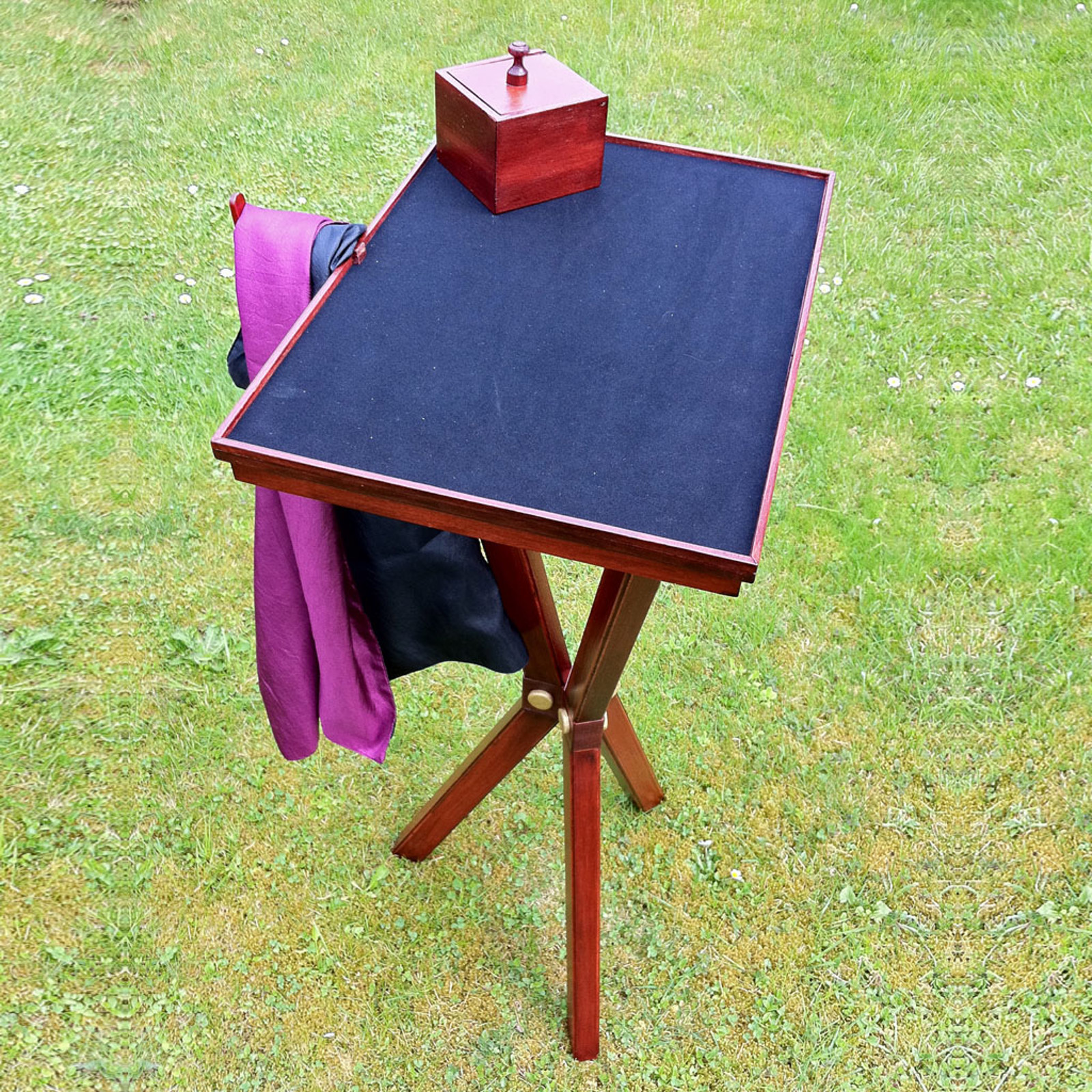Vi har nu taget et par stykker hjem af Losanders særlige "Trinity Table". Det udmærker sig ved at være så solidt og stabilt, at det kan sagtens kan bære dine rekvisitter og anvendes til close-up trylleri som et helt almindeligt bord, inden du når får det til at svæve rundt i luften. Med de tre ben står bordet godt og sikkert på ethvert underlag.