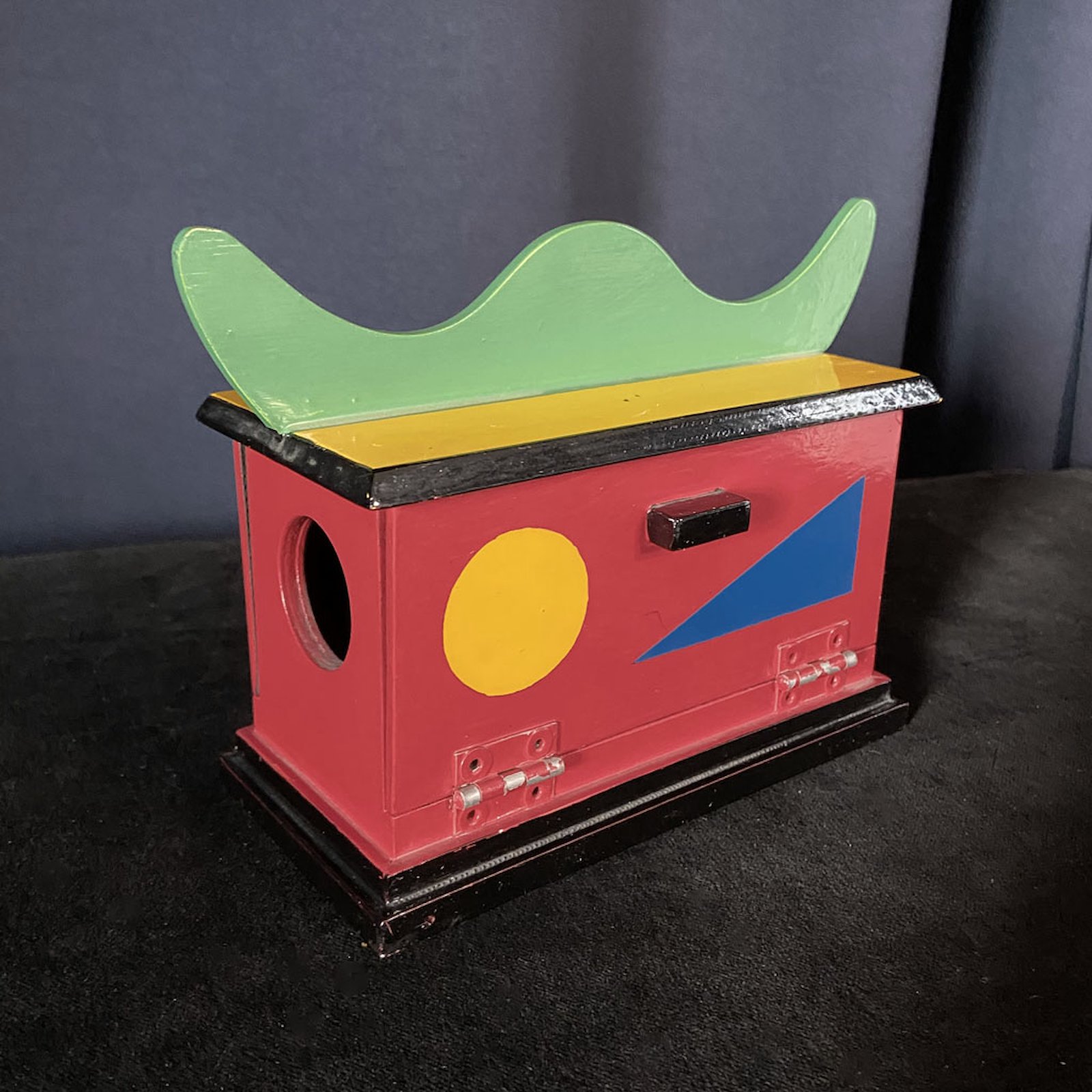 Secondhand, men virkelig velholdt lille apparat til forsvinding af et silketørklæde op til 45 x 45 cm. Dansk produceret ved Zika for årtier siden og dekoreret på den ikoniske farverige måde. Apparatet vises tomt, tørklædet stoppes ind i siden, hvorefter lågerne kan vippes ned, og det er forsvundet!