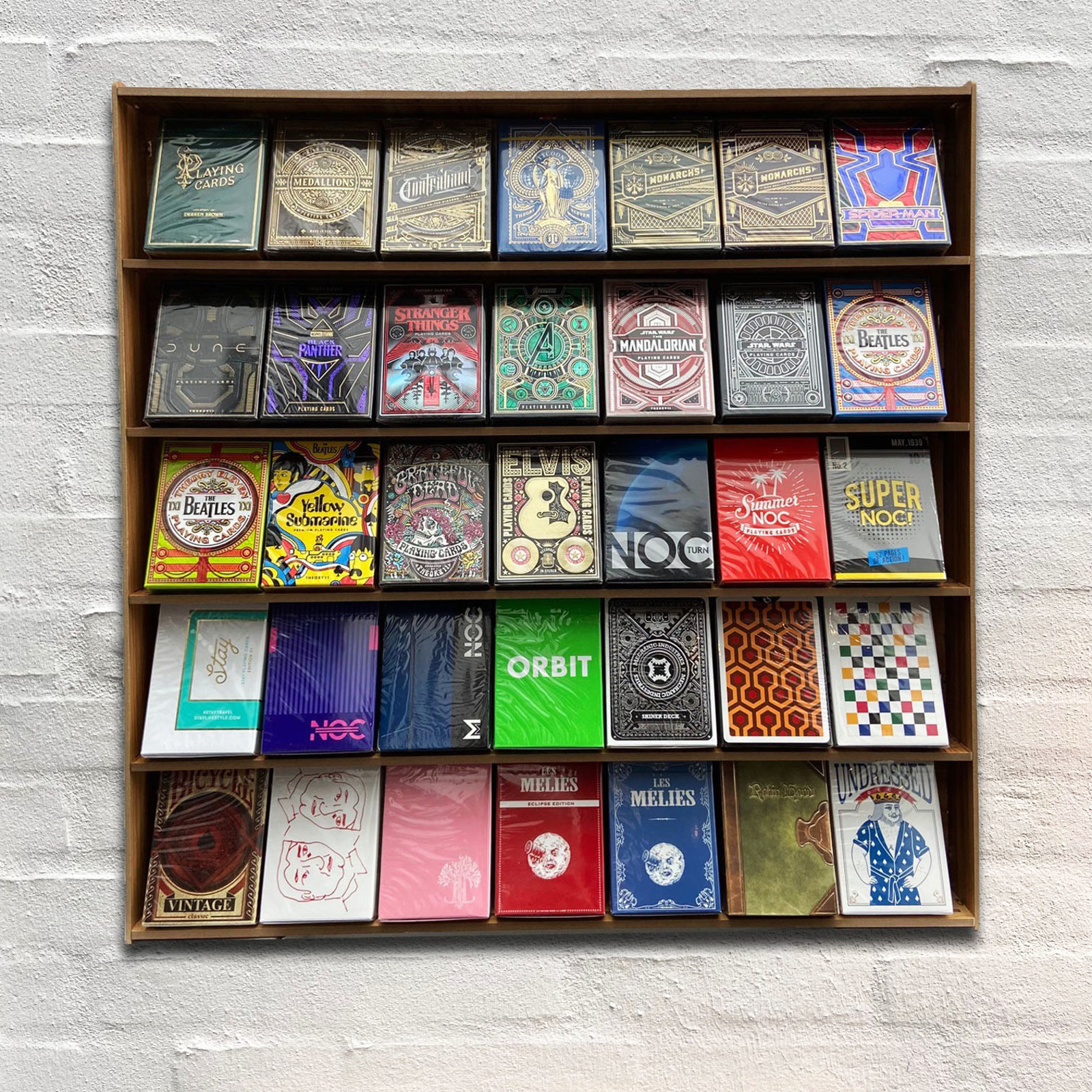 Har du savnet en cool måde hvorpå du kunne udstille og opbevare dine yndlingsspillekort. Så er svaret her, med denne reol bygget til hele 35 spil kort i poker-størrelse. Velegnet til kortspillere, spillekortsamlere, spillekortentusiaster, cardistry-folket og... naturligvis, tryllekunstnere.