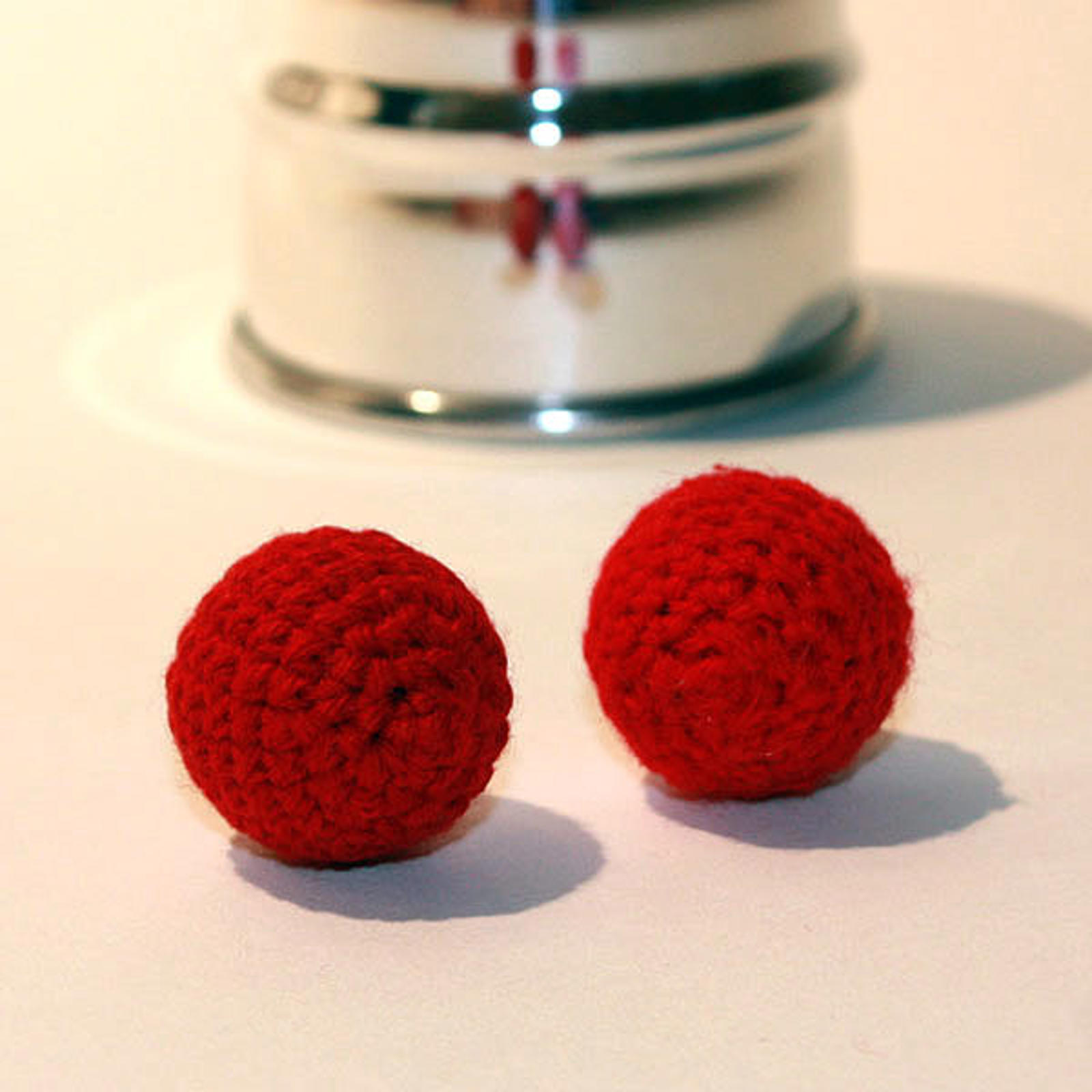 Set with two red handknitted balls for Chop Cup. One metal crochet ball and one similar regular ball. Size 25 mm. / 1 inch.