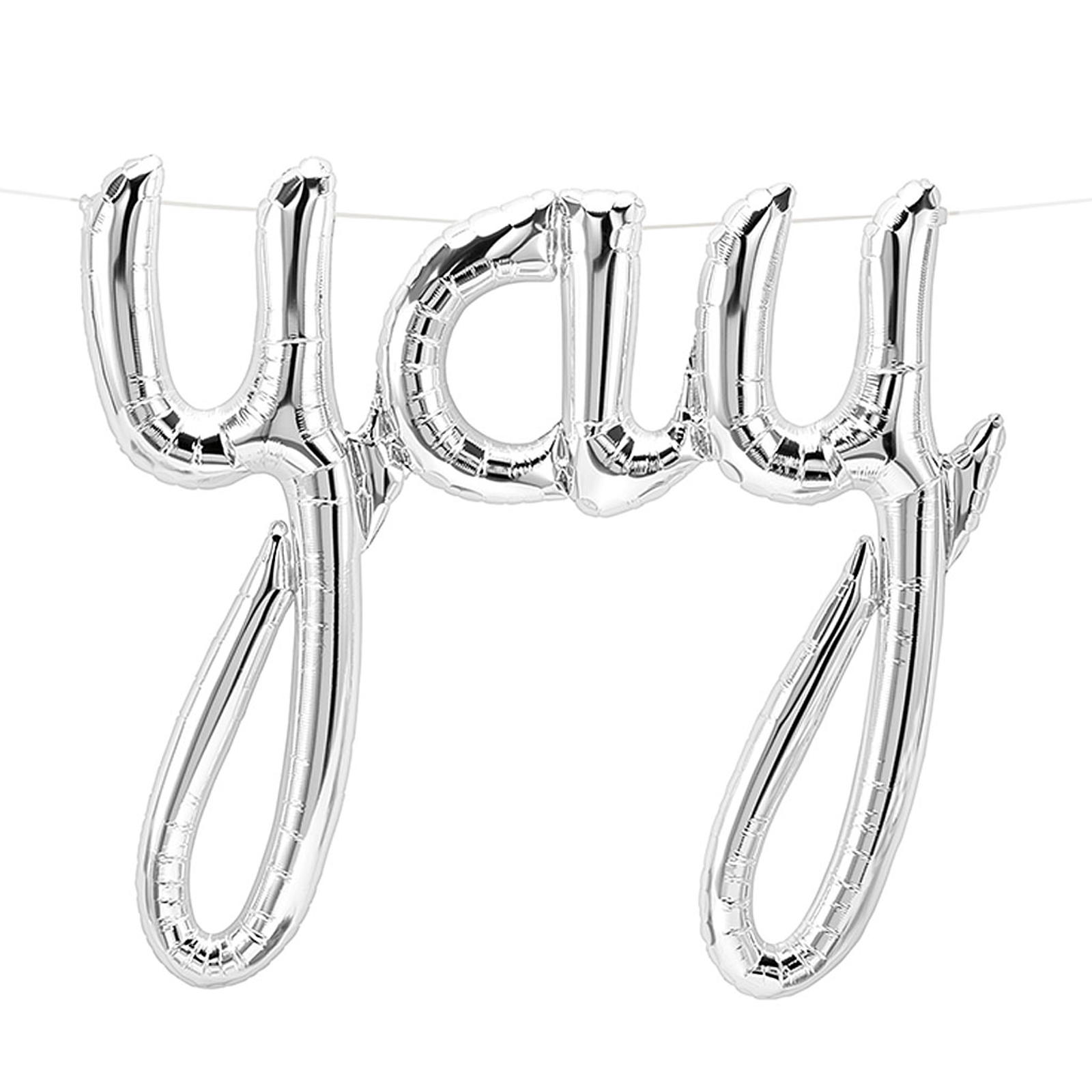 Decorate with this trendy YAY balloon whenever something need to be celebrated. Perfect for a get-together with friends or family. Inflate with the straw enclosed. Self-sealing valve. Size: 114 cm.