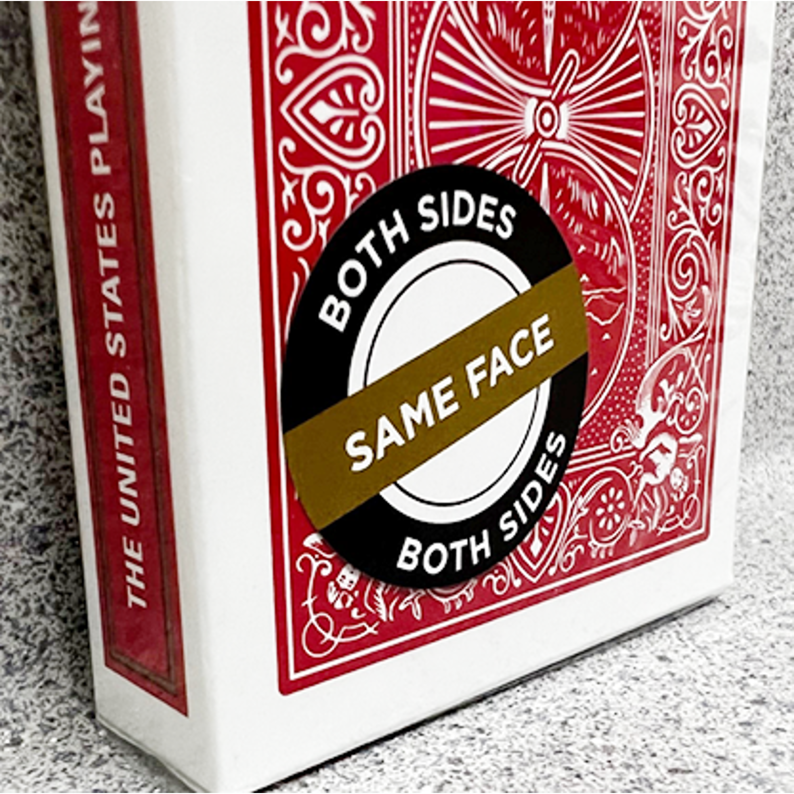 Murphy's Magic & USPCC have produced this special set of two-faced (Mirror Deck Same Both Sides) Bicycle Playing Cards. This is a complete deck of cards, with all 52 playing cards represented as a double faced card - but not like a regular double-faced Bicycle deck, but with the same face on both sides!