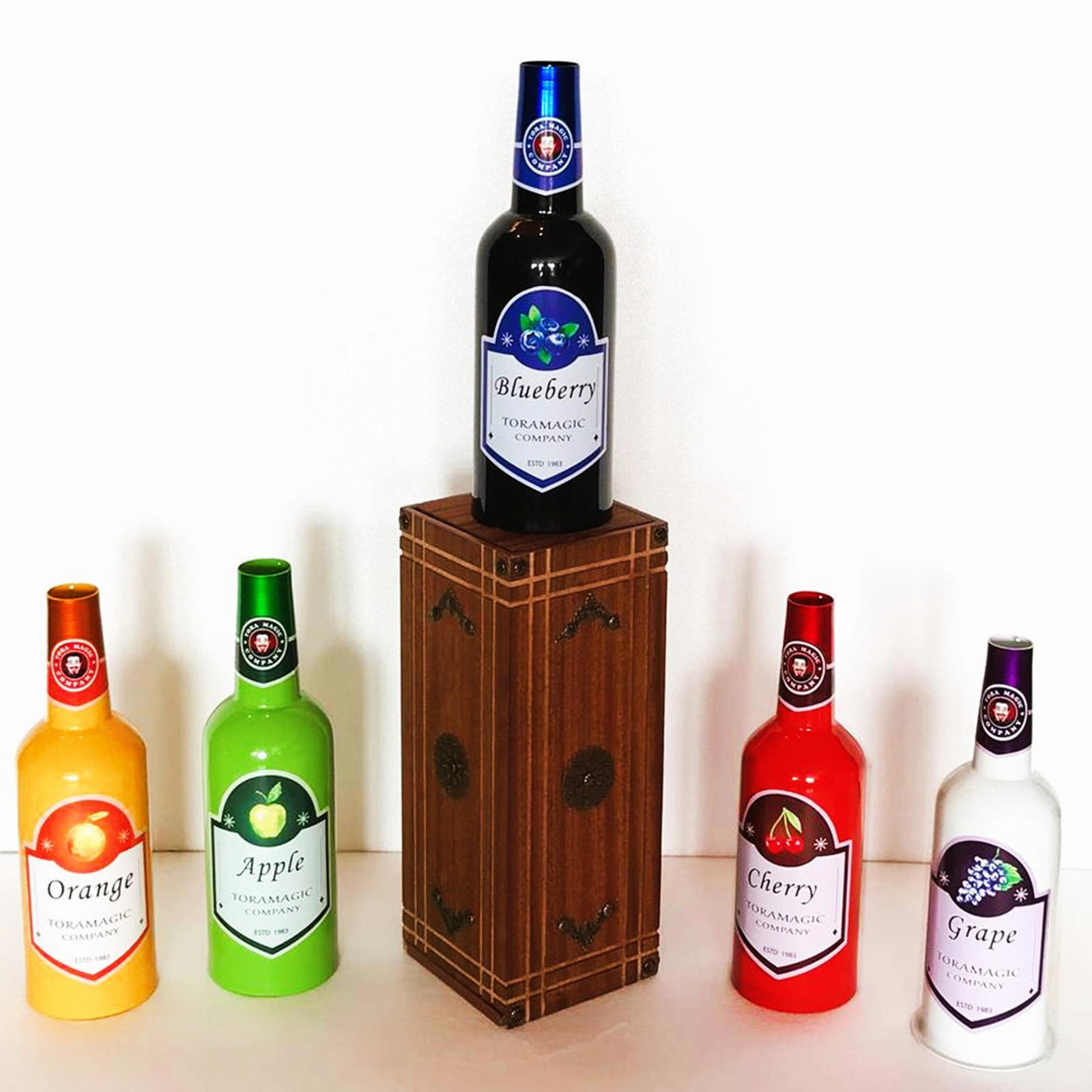 Tora Magic is behind this production of 5 different colored bottles with lemonade-labels: blueberry, apple, orange, cherry and grape juice.