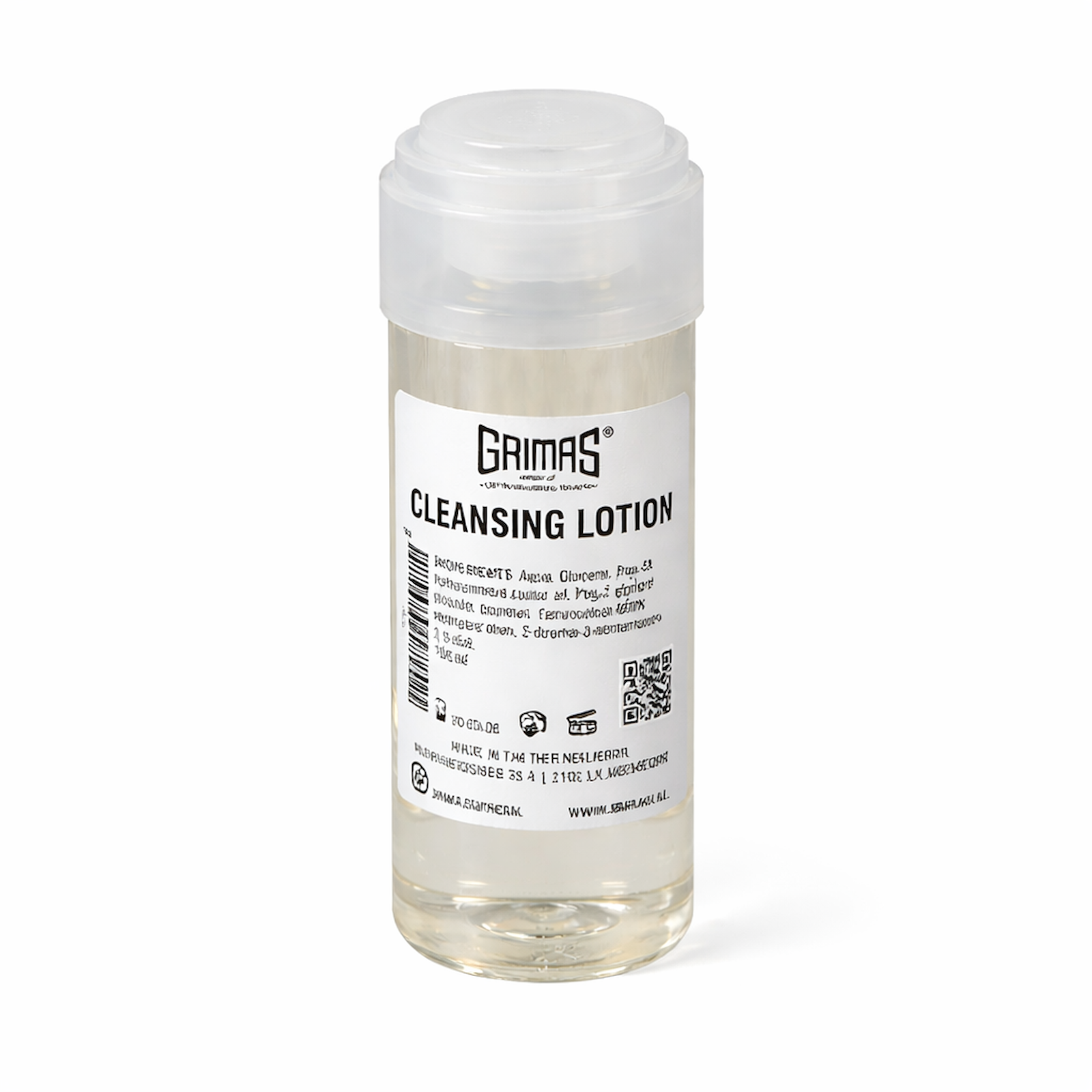 Grimas Cleansing Lotion is a cleansing lotion that cleanses and degreases the skin extra well and can be used both before and after makeup.