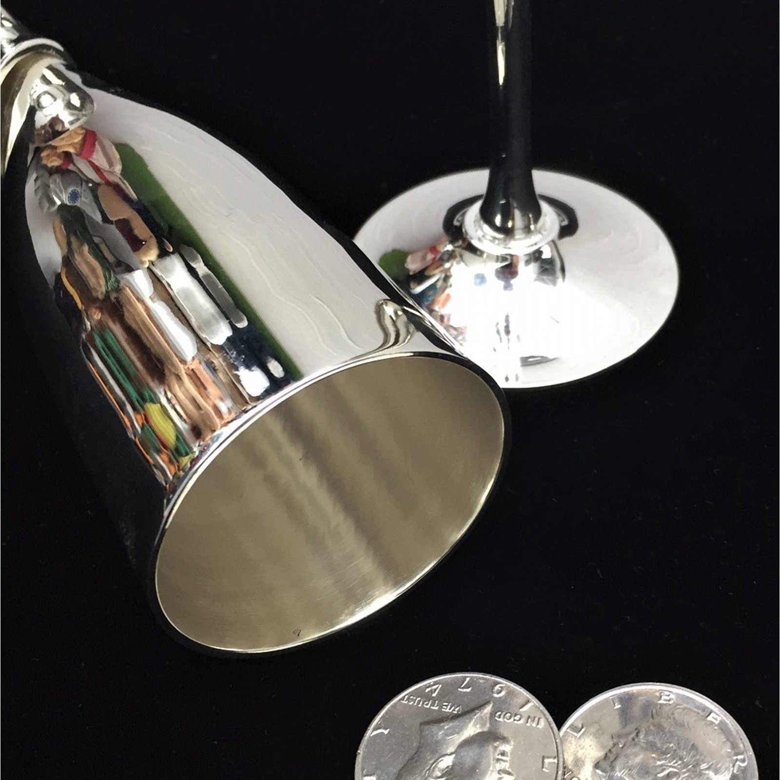 Three U.S. half-dollars invisibly travel from one silver goblet to the other in a beautifully choreographed routine presented by World Summit Award Winner Al Cohen.