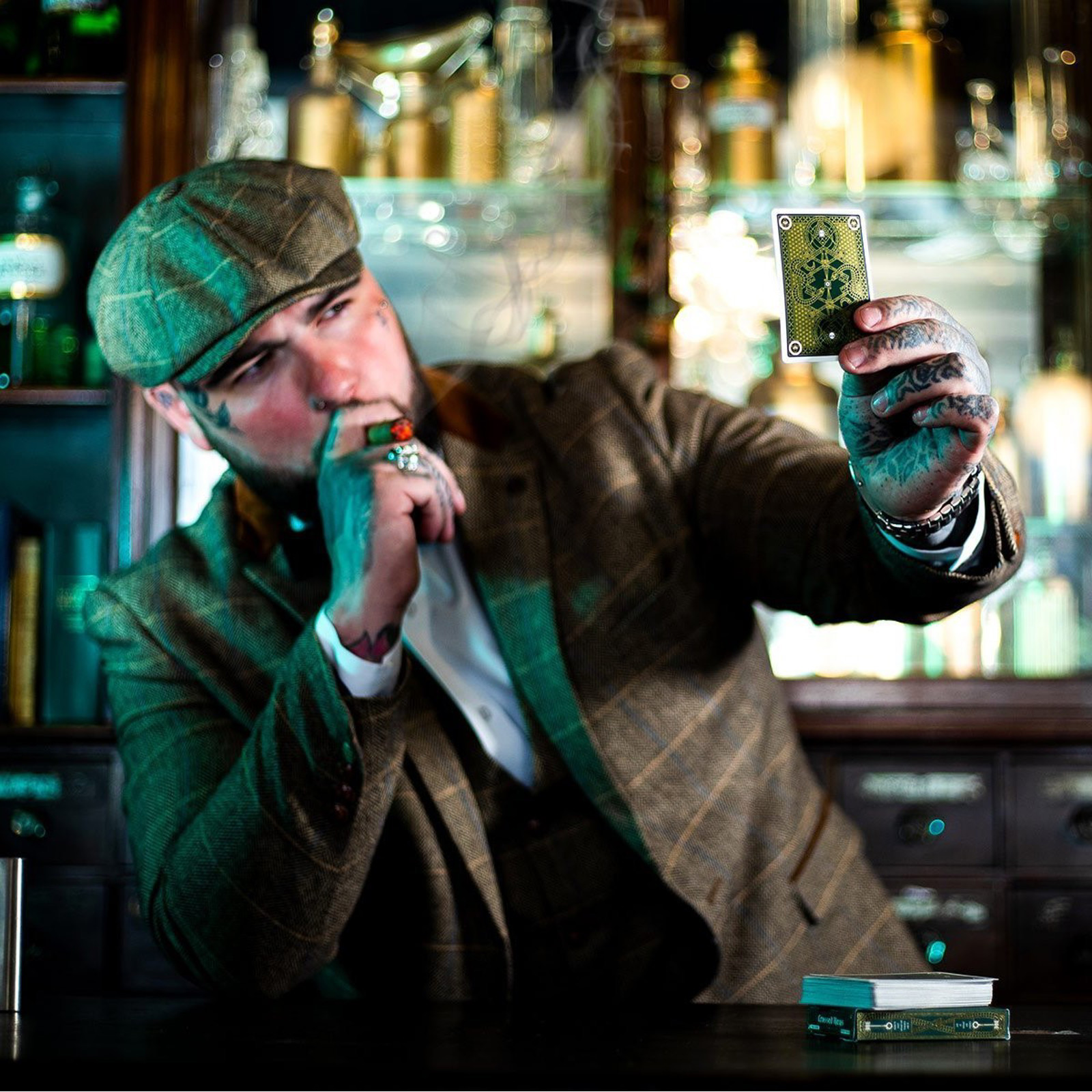 Edwardian green cards are gifted with metallic gold inks, for the details to shimmer in even the dimmest of light.