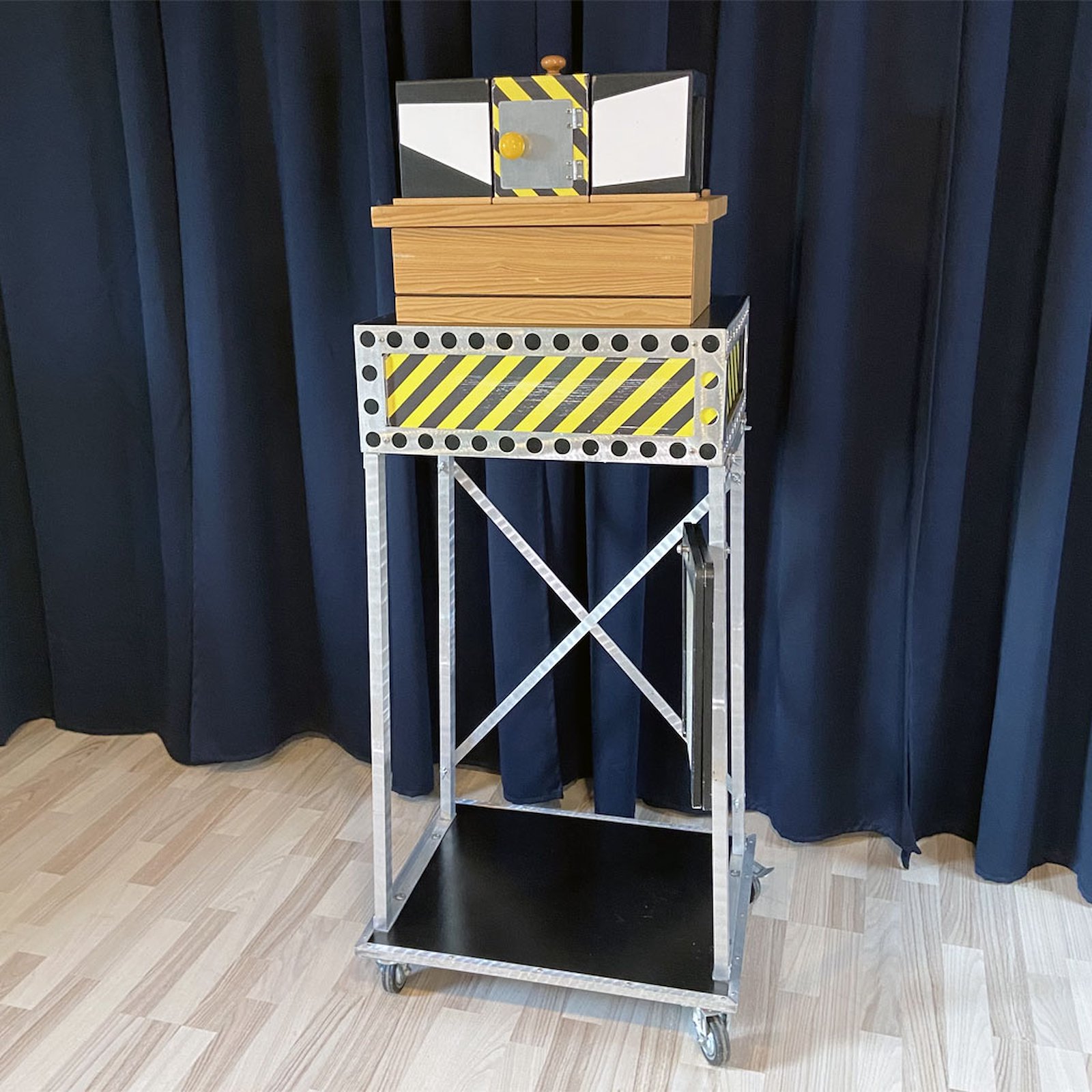 Excellent one-man illusion in very good condition. It was used for a single season with Circus Nemo back in 2017. You insert two blades straight down through your own arm and remove the middle section in a highly convincing manner. Fine details including the APPLAUSE sign.