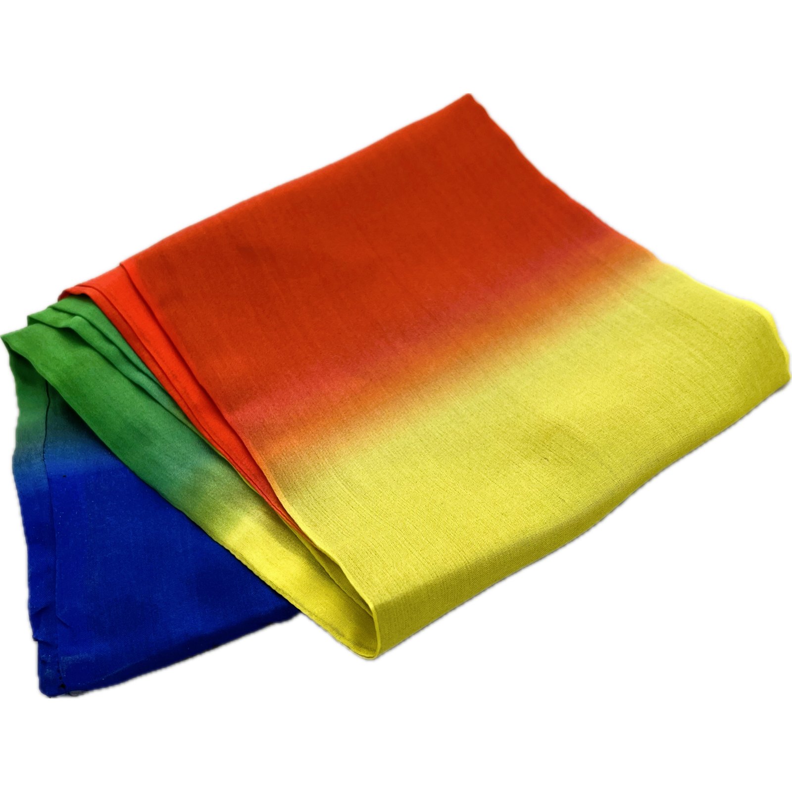 The magician displays a one-meter-long black silk streamer. He waves it in the air, and suddenly it becomes filled with all the colors of the rainbow: red, yellow, green, and blue blending seamlessly together. Just as quickly as the colors appeared, they can vanish again. Top quality from Magic by Gosh."